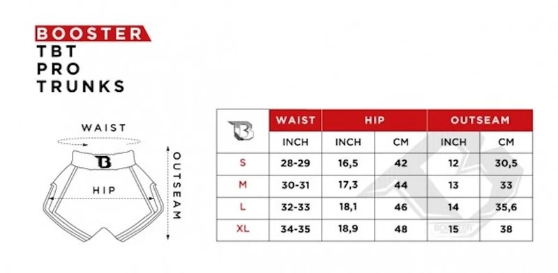 Het prachtige ontwerp en de hoge kwaliteit van de Booster Thaibox-shorts zorgen voor comfortabel dragen met veel bewegingsvrijheid. De Booster Kickbox-shorts zijn volledig en zeer bekwaam met de hand genaaid in Thailand.