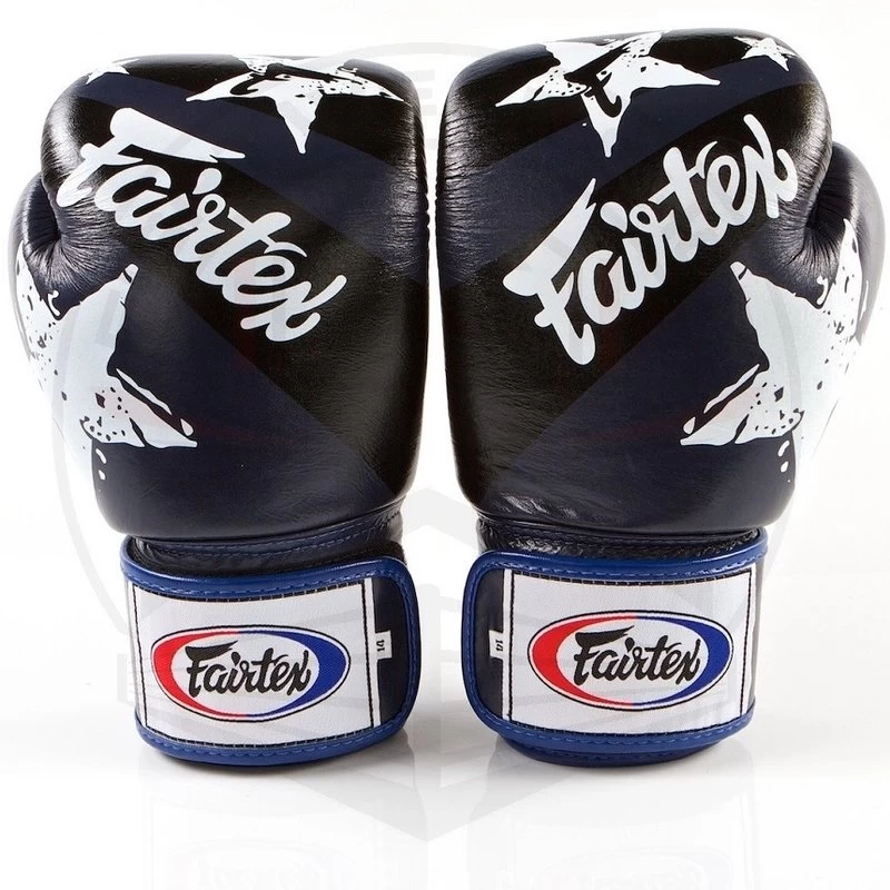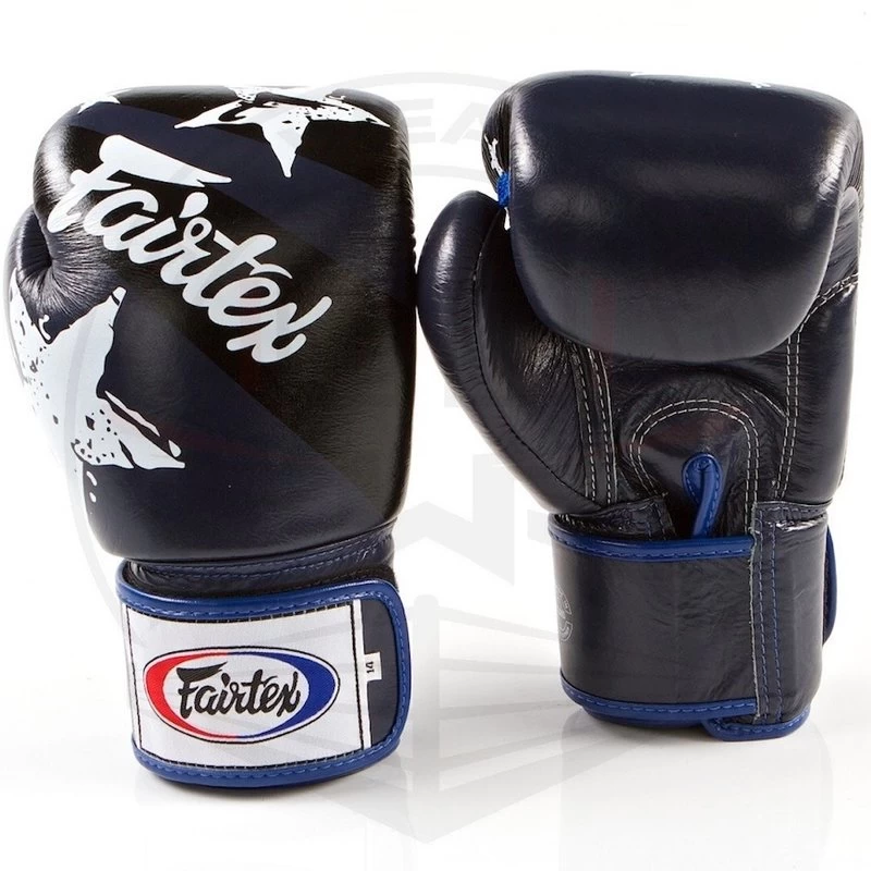 Fairtex Bokshandschoenen Leder Nation Print Blauw.