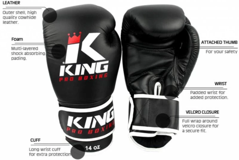 King Pro Boxing KPB Rund Lederen Kick Bokshandschoenen zijn gemaakt in Thailand met meerdere lagen superieure schokabsorberende materialen. Dit om ervoor te zorgen dat jij en je sparringpartners veilig blijven tijdens de training.