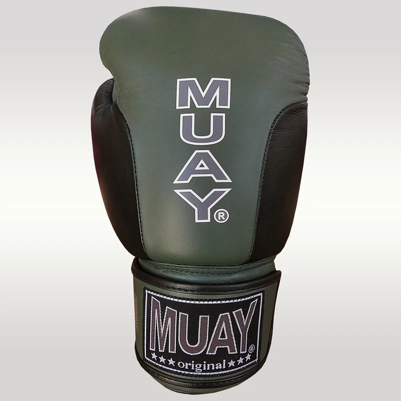 MUAY® Premium Leder Bokshandschoenen Zwart Army Green.
