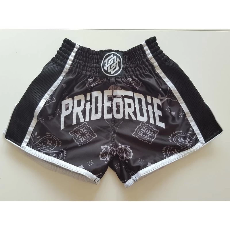 Pride or Die Muay Thai Shorts RISE Zwart Wit.