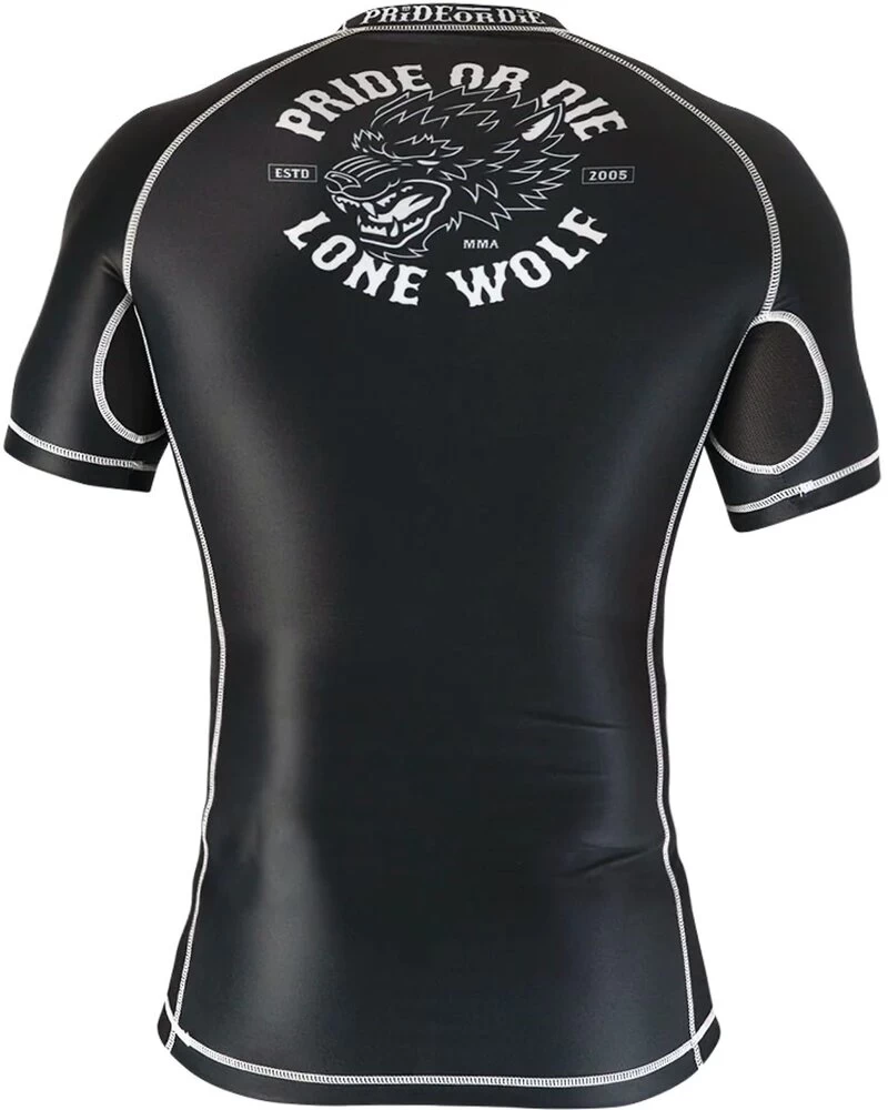 PRIDE or Die Rash Guard Lone Wolf Zwart Wit.