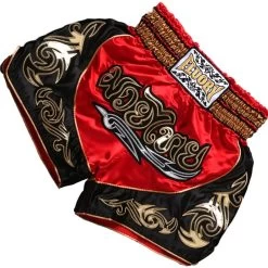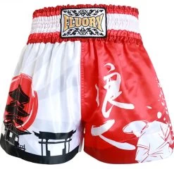 Fluory Muay Thai Short Kickboks Broek Samurai Rood Wit MTSF24
