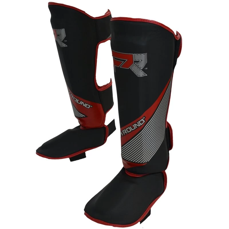 Punch Round Kickboks Scheenbeschermers Evoke Zwart Rood.