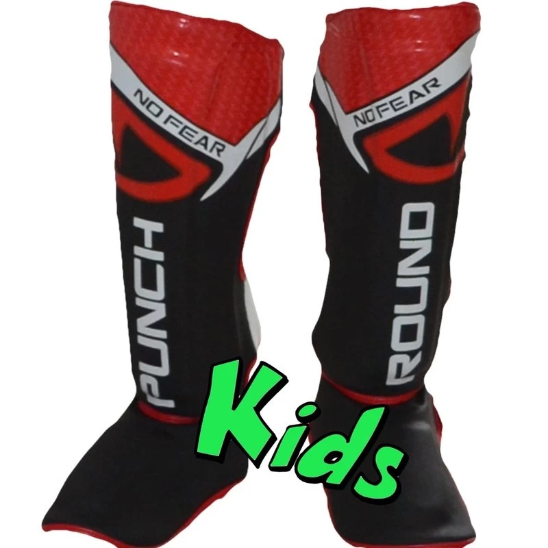 Punch Round Kids NoFear Kickboks Scheenbeschermers Zwart Rood.