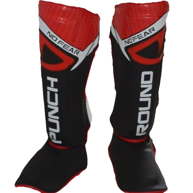 Punch Round NoFear Kickboks Scheenbeschermers Zwart Rood.