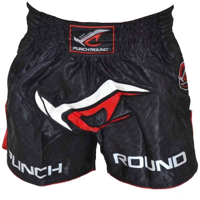 Punch Round NoFear Muay Thai Kickboks Broek Zwart Rood.