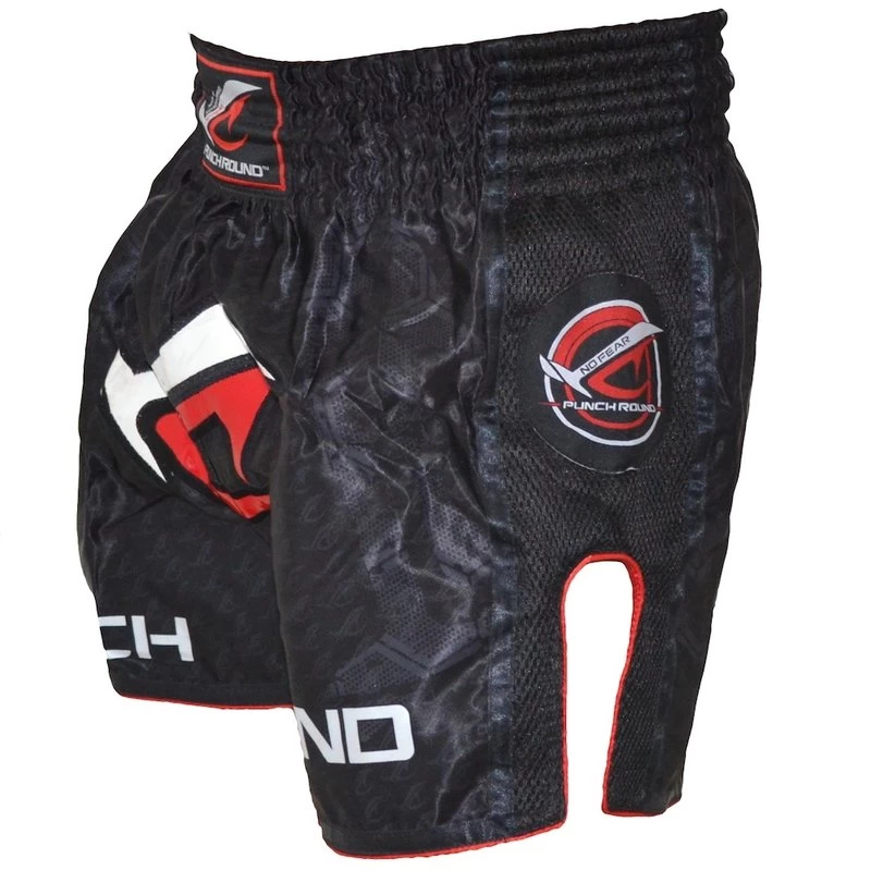 Punch Round Thai Shorts zijn volledig handgemaakt en profiteren van alle expertise van Thaise specialisten. Zie ook de mooie gesublimeerde details in het satijn van het NoFear design.