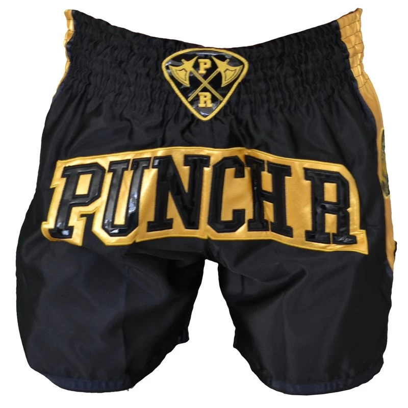 PunchR Muay Thai Kickboks Broek Zwart Goud.