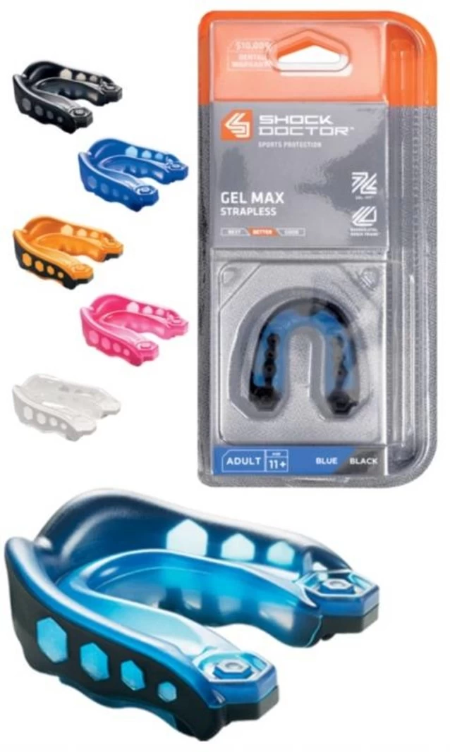 De altijd betrouwbare, nooit falende Gel Max-gebitsbeschermer, die ernaar streeft om alle essentiële zaken te bieden, van bescherming tot comfort. Deze gebitsbeschermer van meerdere materialen is gemakkelijk te gebruiken en een universele pasvorm voor alle leeftijden.