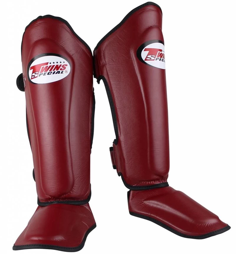Twins Kickboks Scheenbeschermers SGL 7 Wijn Rood Muay Thai Gear.