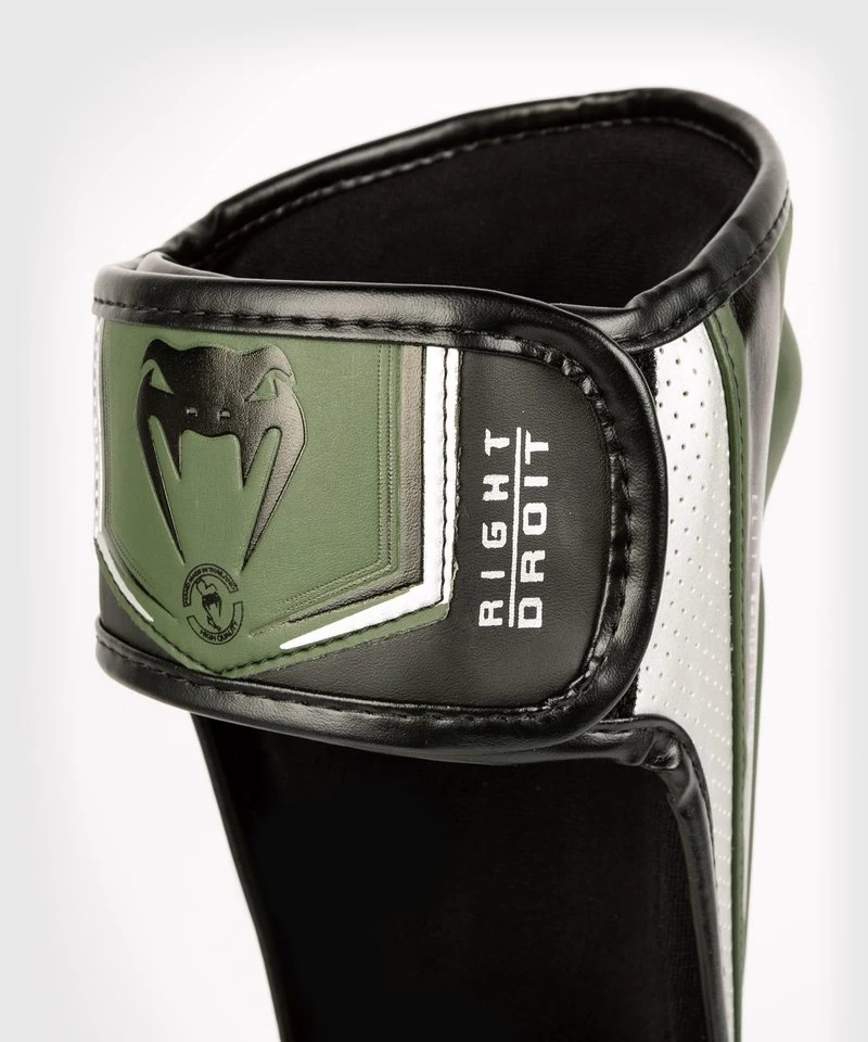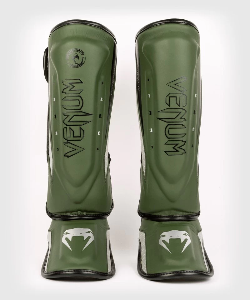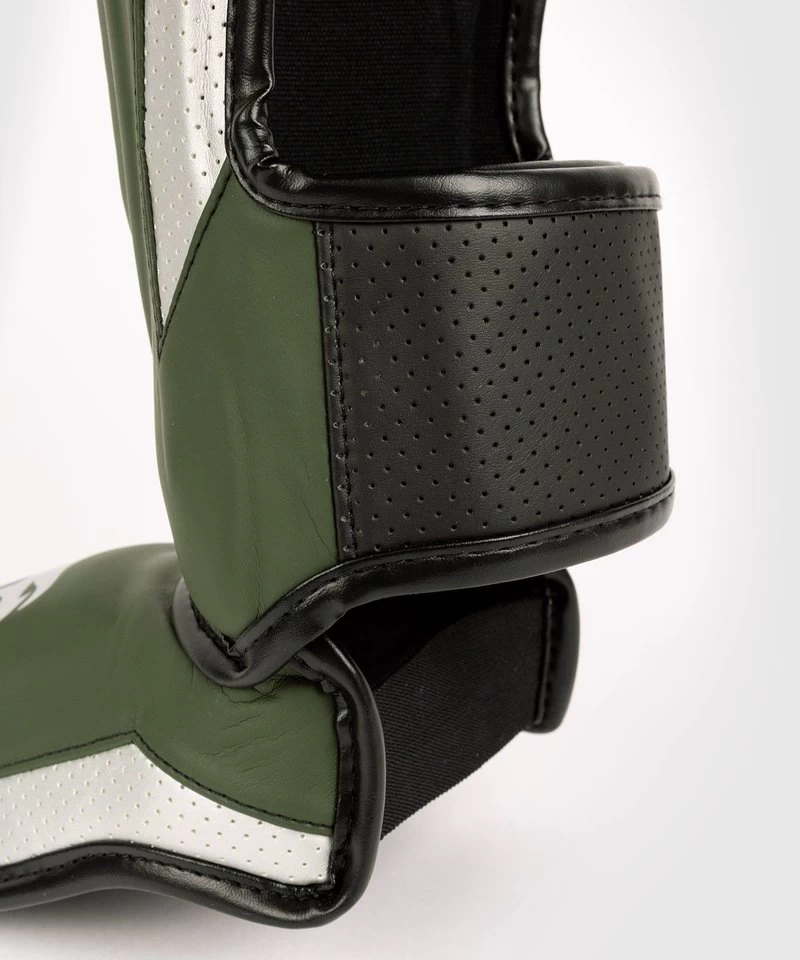 Venum Elite Evo Kickboks Scheenbeschermers Kaki Zilver.
