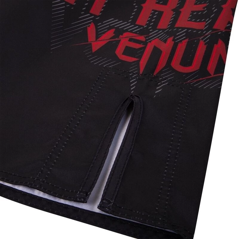 Venum Fightshorts Train Hard Hit Heavy Zwart Rood.